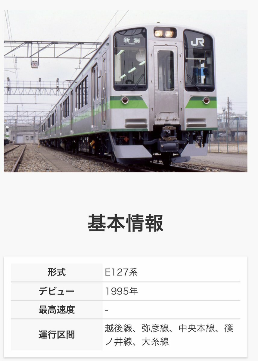プンチョ・インキーマン E127系まで運用離脱したとかいう話を聞いてお目々グルグル 曽根 BzKA@終わりなき快楽の人生 奈良のウグイス103系 新潟の115系、E127系 これらは事前告知もなく当日突然引退判明でしたね むしろこのご時世考えるとこうであるべきだと思う 情報チャンネル もうこの音は聞けない 田村 亮太 Ryota Tamura 新潟115系の引退がショックすぎて寝れません… 数年後のJR東日本新潟支社が99.9%行うであろう企画 「115系やE127系が纏った二次新潟色をE129系で復刻します!」 「特急いなほや特急北越として活躍した485系電車の上沼垂色をE653系で復刻します!」 曽根 目蒲線de会いませう 新潟地区から115系もE127系も運用離脱ですか!? 今改正での離脱多いですね… カモメェ氏 【悲報】E127系新潟地区から撤退 曽根 ☆おっくー☆